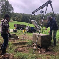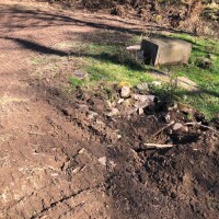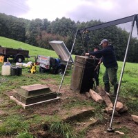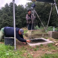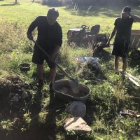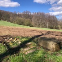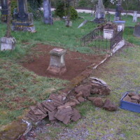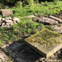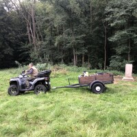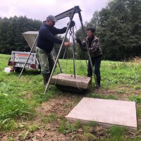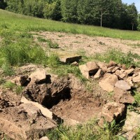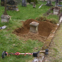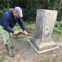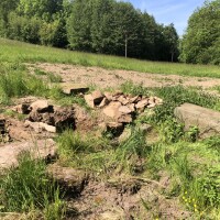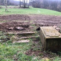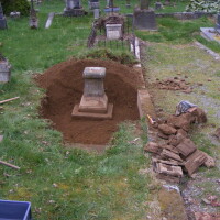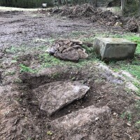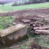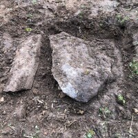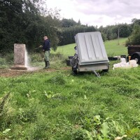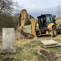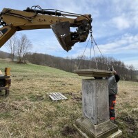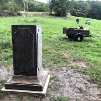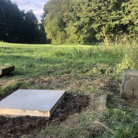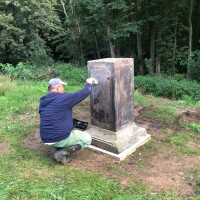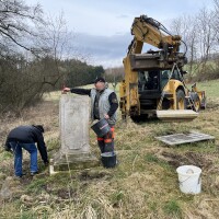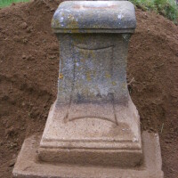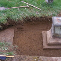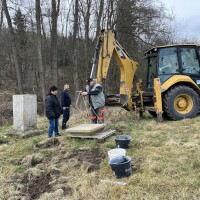 Dne 31. 5. 2023 byla na základě doporučení kameníka Josefa Sotony vykopána jáma o půdorysu cca 100 x 100 cm a hloubce cca 50 cm, ve které by se měly do betonu vyskládat kameny základu podstavce.
