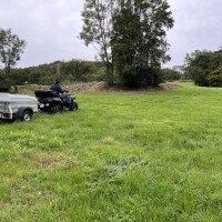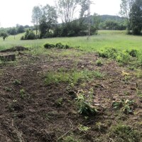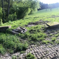 Seč louky na dotčeném pozemku proběhla až koncem září roku 2022. Vzhledem k následnému počasí a časovým možnostem Vladimíra Břehovského z Tašova proběhly práce na úpravě terénu v okolí kříže na jaře příštího roku, dne 3. 4. 2023. Byly odstraněny pařezy s kořeny a terén srovnán. Následně, dne 8. 4. 2023, byla provedena příprava pro základy podstavce, resp. odkopánim vrchní vrstvy zeminy včetně kamenů byl vymezen prostor, kde se musí vykopat jáma.