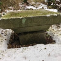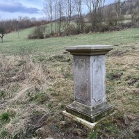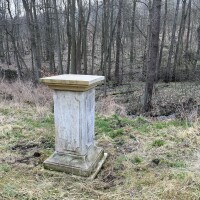 Kameník Josef Sotona přislíbil, že v zimní sezóně 2023/2024 vyseká hlavici podstavce podle výkresu - viz sekce Soupis, oddíl Kresba/výkres. Přiložená fotografie je pořízena v jeho dílně v Mnichově (na Chvojensku) dne 3. 2. 2024. Veškeré kamenické práce na tomto podstavci budou vyfakturovány po osazení hlavice v létě roku 2024.