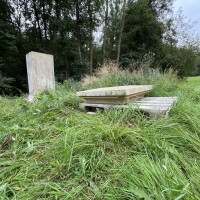 Dne 7. 7. 2022 bylo pod patronací NPÚ ÚP Ústí nad Labem pomocí detektorů na kov důkladně prozkoumáno okolí dříku v okruhu cca 50 m. Našlo se ale jen několik kusů (zbytek „záře“ a břevna) v duchu nálezů ze dne 25. 6. 2021 – viz Evidenční karta.