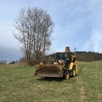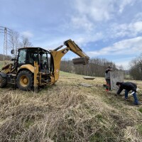 Dne 2. 4. 2025 se v 9.00 hod. u kříže Proboštov VII sešli kameník Josef Sotona a jeho maminka s Vláďou Kůstkou, který přijel traktorbagrem z Malečova. Pomocí lan se vloni na podzim přivezená hlavice podstavce připoutala na hák u lžíce. Po nanesení malty na horní plochu dříku byla hlavice traktorbagrem opatrně ustavena na dřík. Za necelou hodinu bylo hotovo.