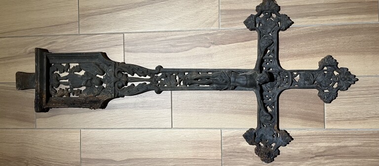 At the end of October 2024, Vilém Keclík from Proboštov offered the association's chairman the opportunity to donate a cast iron cross. It is a cross that was found about 30 years ago by an acquaintance of his who is no longer alive. The acquaintance's wife contacted Vilém Keclík to ask if he wanted to take it, otherwise she would "throw it away." The association's chairman discussed the possibility of using the cross with Martin Šerák, who has been involved in the restoration and installation of crosses for many years (among other things, he renovated the Malečov II cross for the association). Finally, an agreement was reached that the chairman of the association would take over the cross from Vilém Keclík on November 20, 2025, and then hand it over to Martin Šerák for further use in the open air.