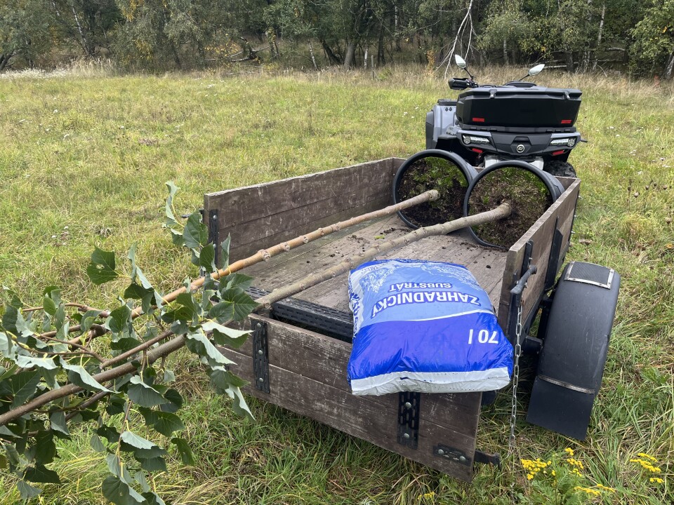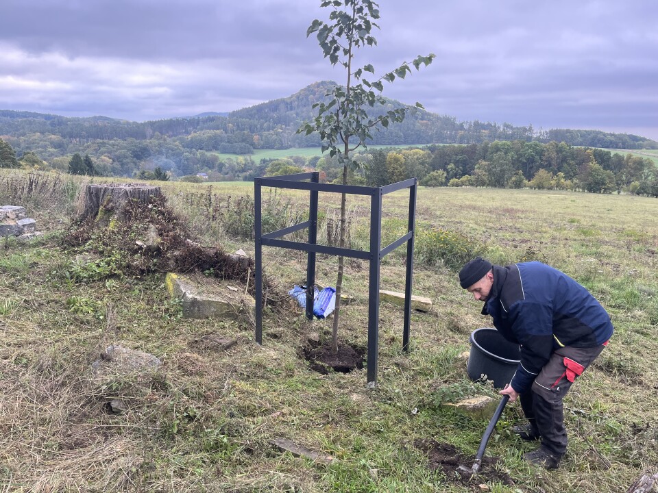 After the association chair and the mayor agreed that the municipality would pay for one linden tree and the association would pay for the other, including transport, two more linden trees were ordered from the Gabriel nursery in České Kopisty at the beginning of October 2025. On October 9, 2025, they were delivered to Iveta Pilníková's garden in Rýdeč, and on Saturday, October 11, 2025, in the morning, they were transported to the site on a trailer behind Jiří Esö's quad bike. In the afternoon, the lime trees were fitted with protective covers to prevent them from being gnawed by animals.