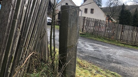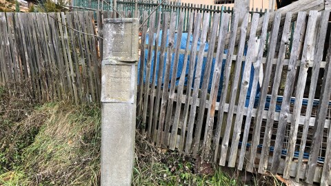 Milník z roku 1864 se nachází jihozápadně od kostela na křižovatce cest vedoucích do Velkého Března, Tašova a Rýdeče. Štíhlý kvádr má dvou stranách orámované nápisové desky se směrovkami a česko-německými nápisy a udanou vzdáleností k příslušné obci.