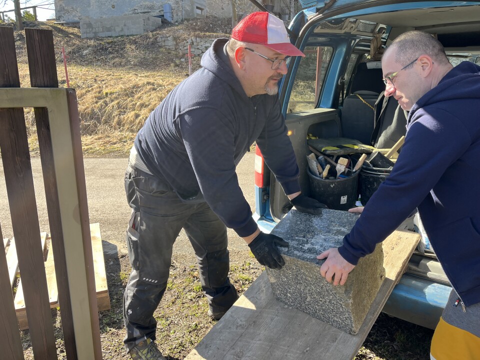 Dne 27. 10. 2025 se v 10.30 hod. na místě sešli kameník Sotona, jeho mamka a strojník Ladislav Kůstka s traktorbagrem spolu s předsedou spolku. Později ještě vypomohl Tomáš Jelínek, který bydlí nedaleko od pomníku. Nejdříve kameník tlakovou vodou očistil nahrubo celý pomník a důkladně plochu, po které se posunutý pomník bude vracet zpět na své místo. Kolem spodní části pomníku se nasadil popruh, který se zapojil do oka na hydraulickém ramenu se lžící. Jemným zpětným posunem ramene se pomník během chvíle dostal na své místo. Kameník potom pomník usadil po odměření metrem přesně pomocí páčidel. Následovalo rozebrání bočních kamenných prvků, mechanické očištění hlíny a rostlinstva usazených v mezerách za kameny. Díky dlouhé páce Tomáše Jelínka (krumpáč vsazený do lešenářské trubky) se nakonec podařilo odvalit rozpukané kusy betonu, které na historické fotografii nebyly. Po odstranění náletového porostu před a po stranách pomníku došlo k důkladnému očištění všech kamenných dílů tlakovou vodou. Nakonec byly na své místo vsazeny boční prvky pomníku. Práce skončily v cca 14.30 hod.